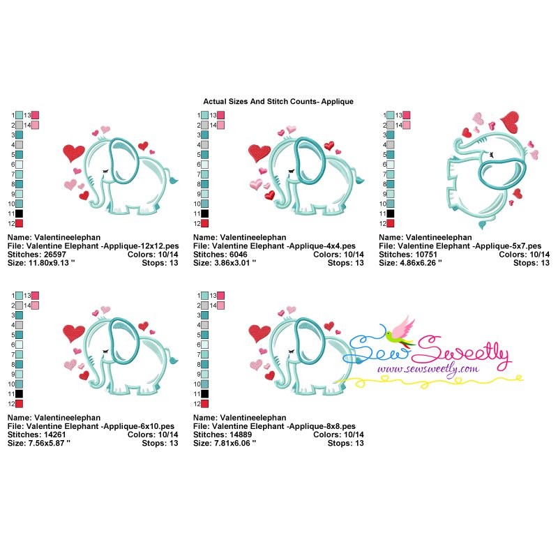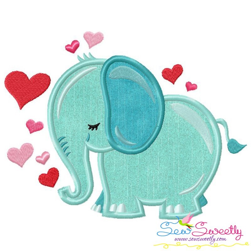Valentine Elephant Machine Embroidery Applique Design Pattern For Valentine's Day.