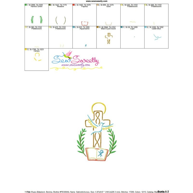 Cross With Bible And Dove Religious Embroidery Design Pattern-1