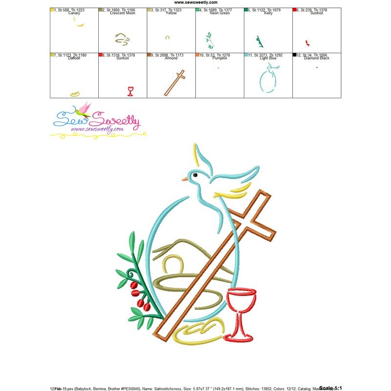 Cross With Bible And Dove Religious Embroidery Design Pattern-1