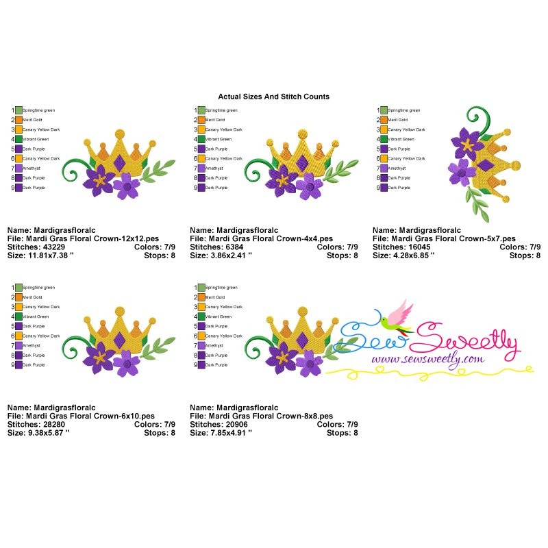 Mardi Gras Floral Crown Embroidery Design Pattern