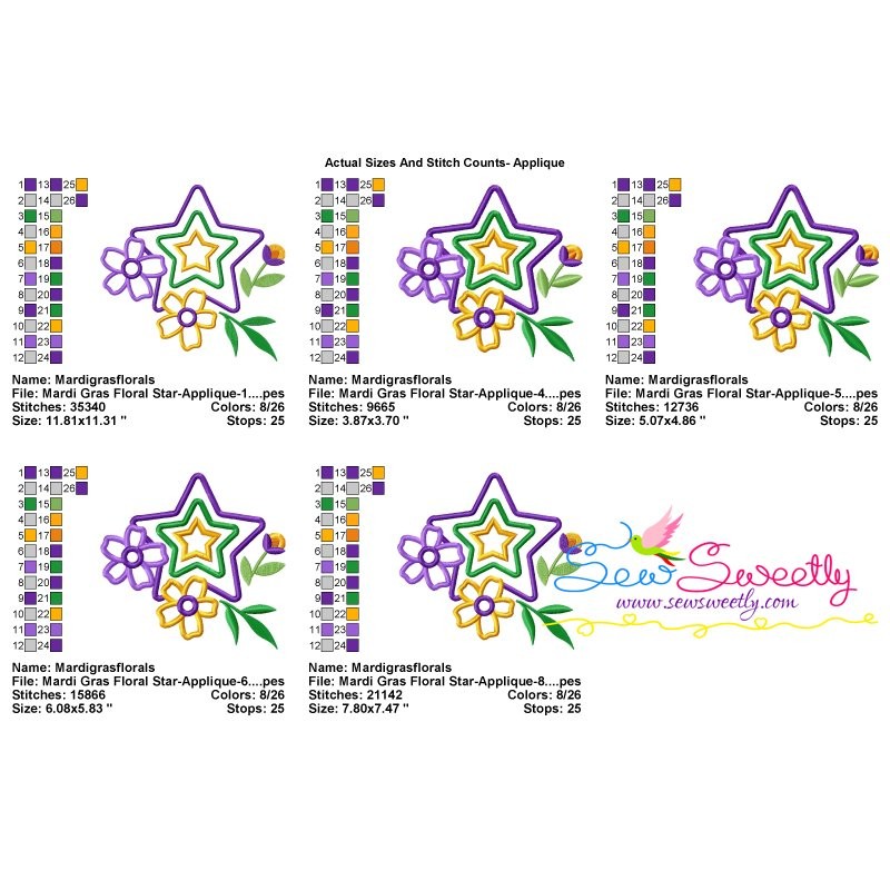 Mardi Gras Floral Star Machine Embroidery Applique Design Pattern For Mardi Gras Festival.