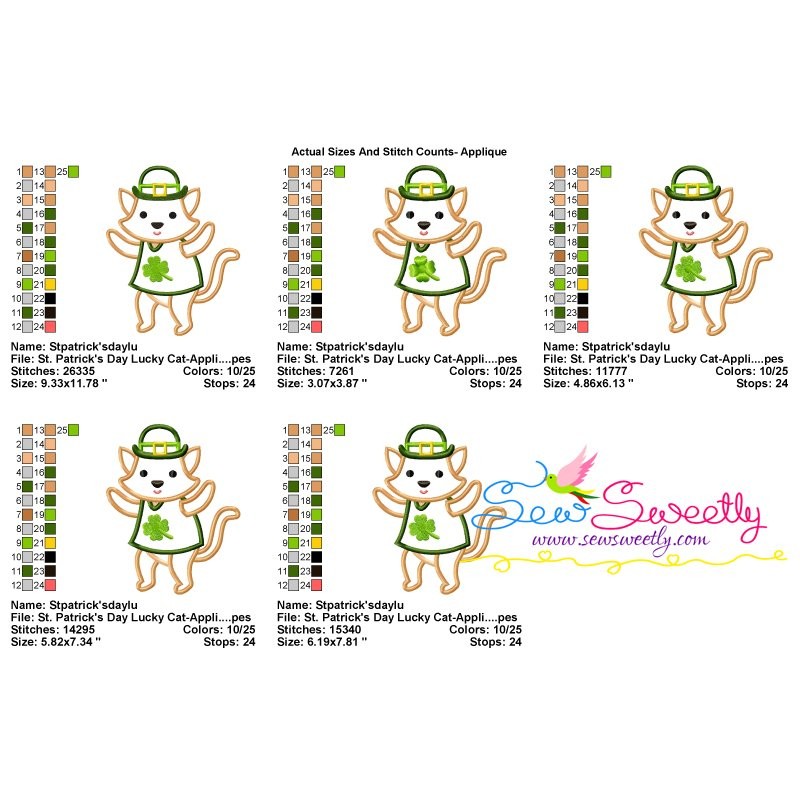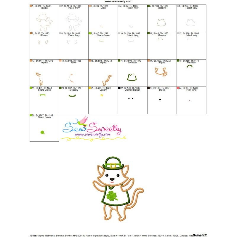 St. Patrick's Day Lucky Cat Machine Embroidery Applique Design Pattern For St. Patrick's Day.