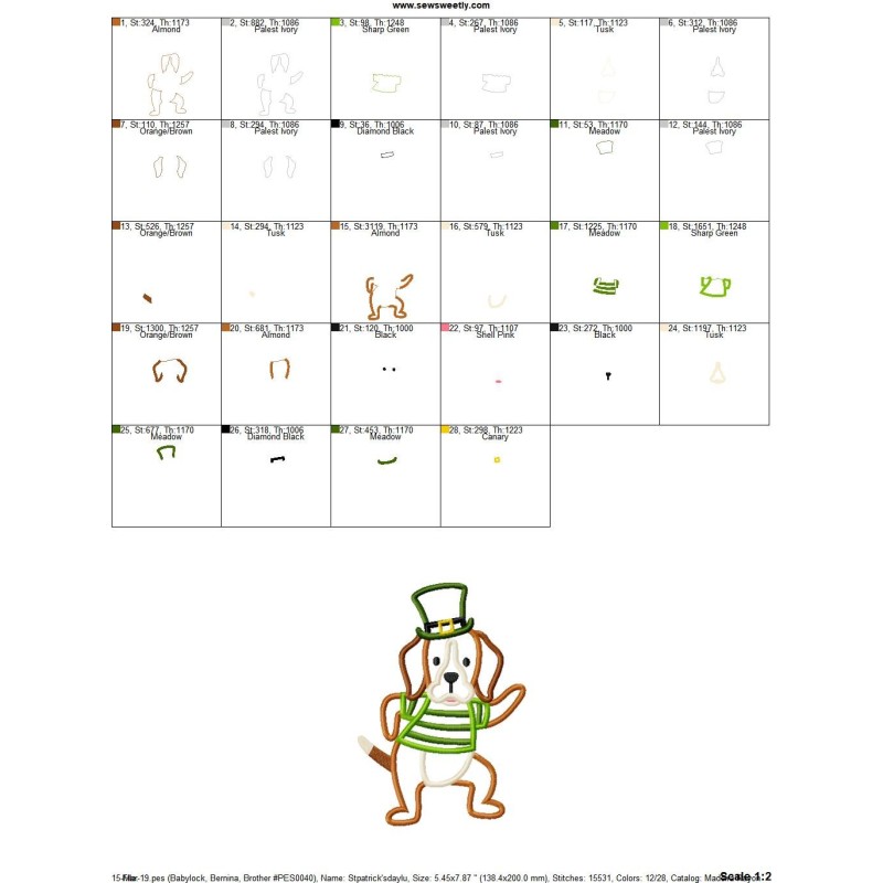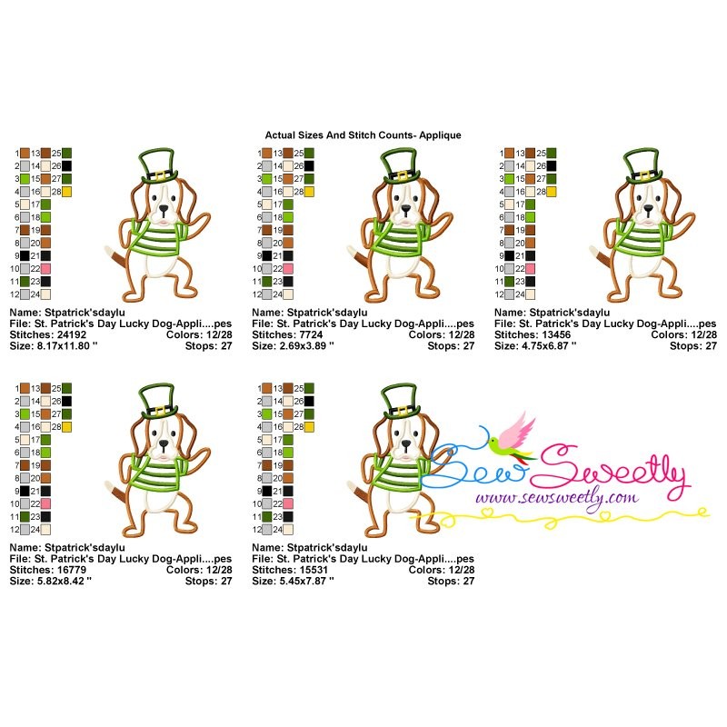 St. Patrick's Day Lucky Dog Machine Embroidery Applique Design Pattern For St. Patrick's Day.