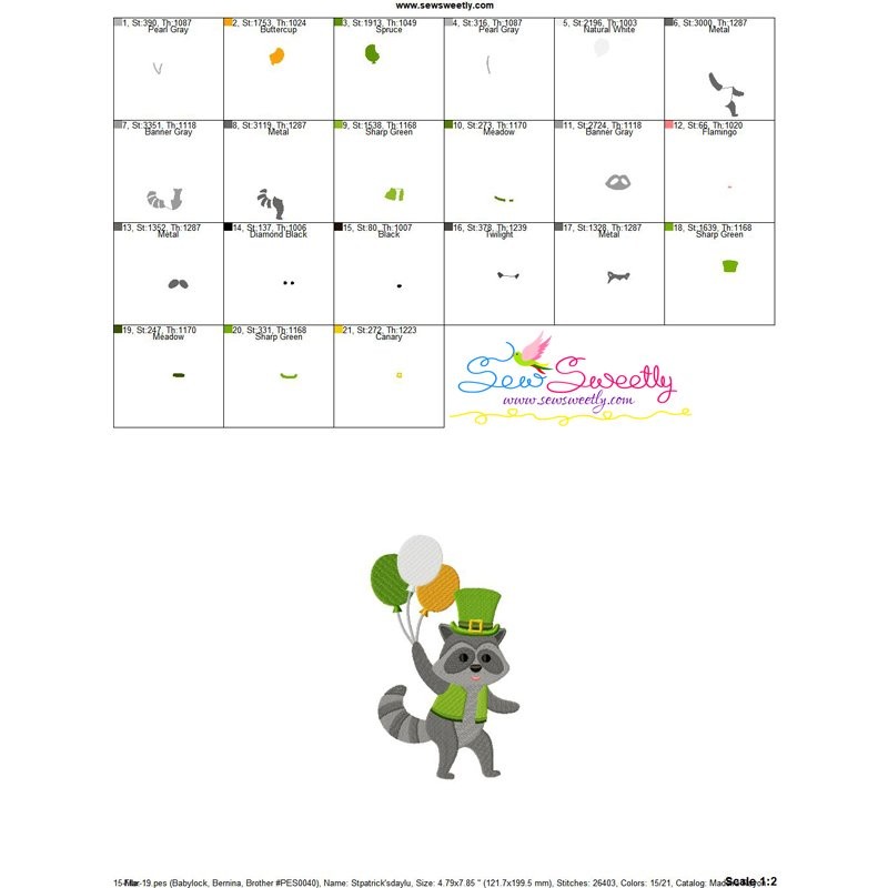 St. Patrick's Day Lucky Raccoon Embroidery Design Pattern-3