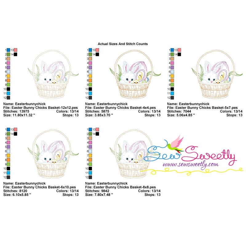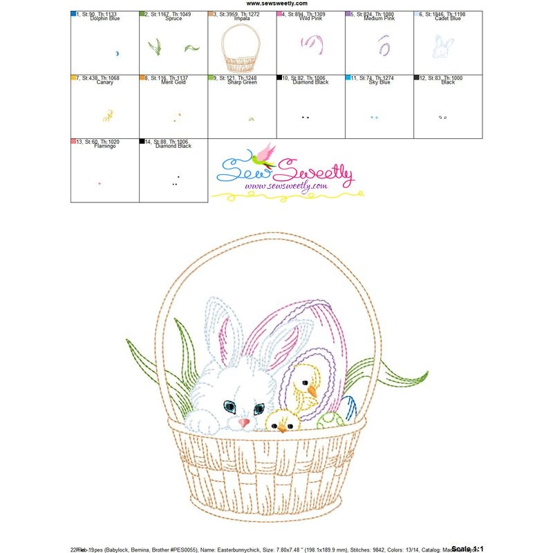 Colorwork Easter Bunny Chicks Basket Machine Embroidery Design Pattern For Easter.