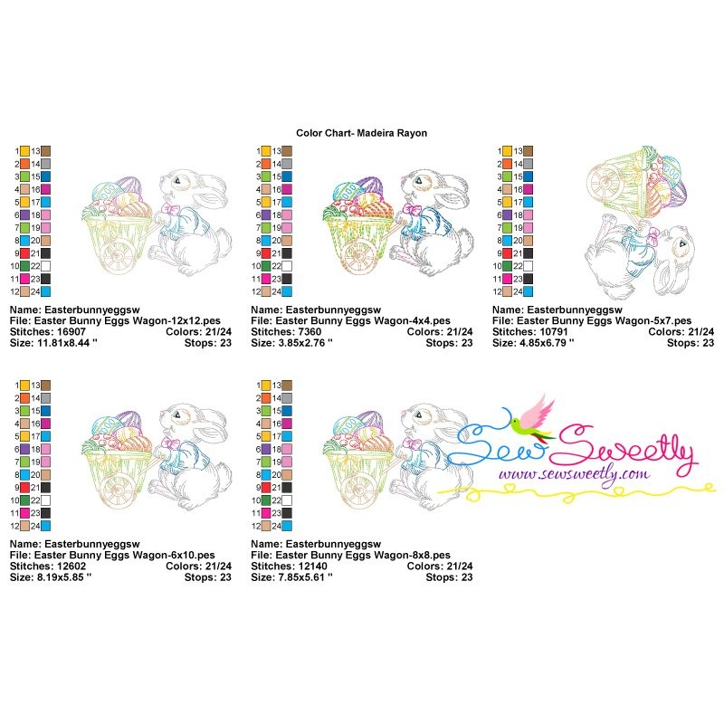 Colorwork Easter Bunny Eggs Wagon Machine Embroidery Design Pattern For Easter.