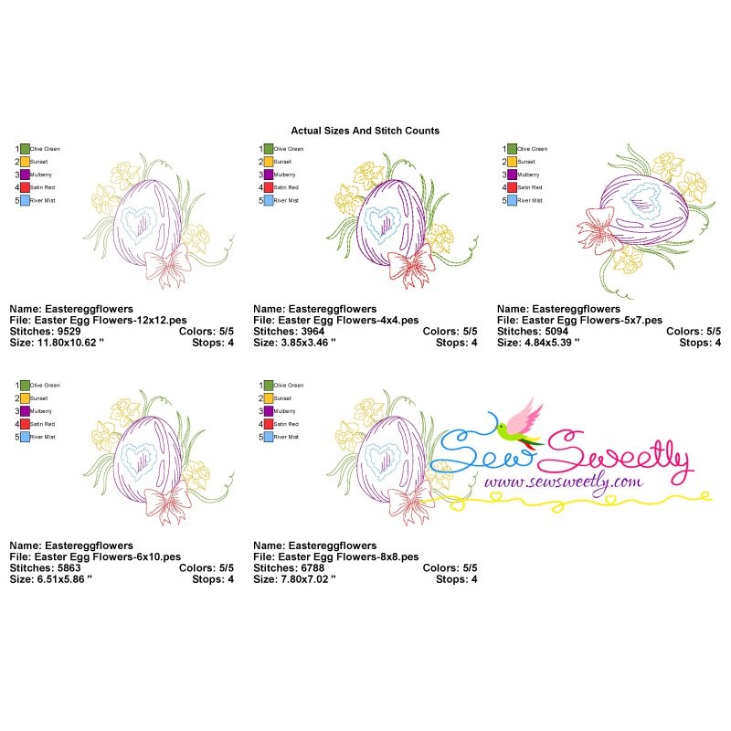 Colorwork Easter Egg Flowers Machine Embroidery Design Pattern For Easter.