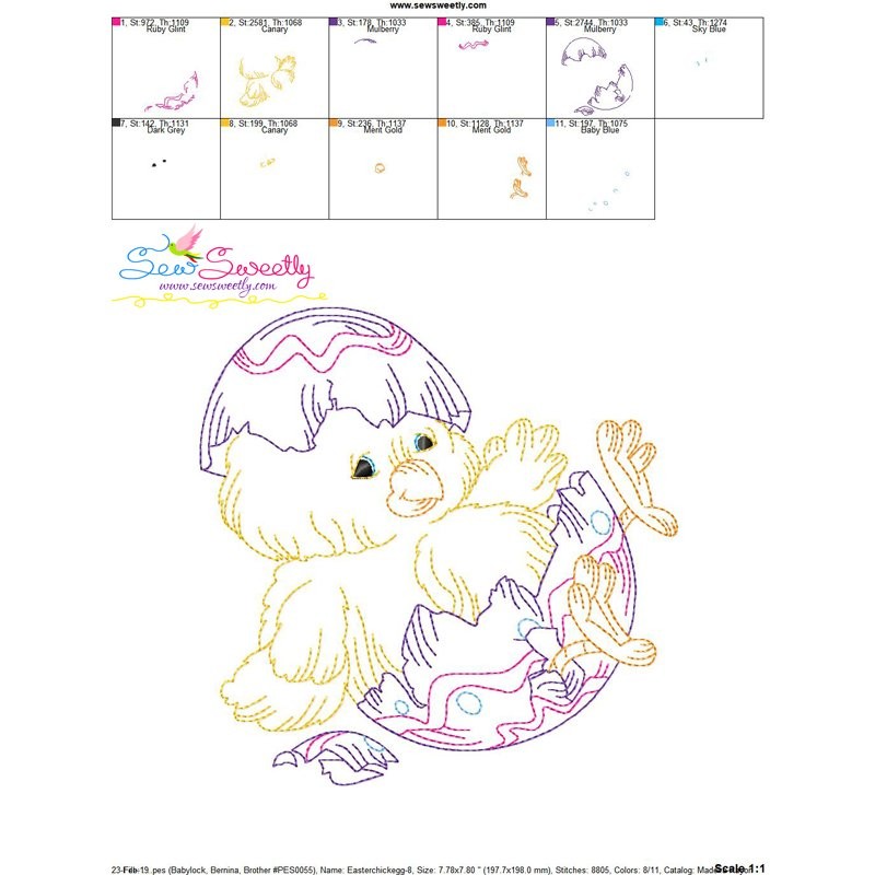 Colorwork Easter Chick Egg Machine Embroidery Design Pattern For Easter.