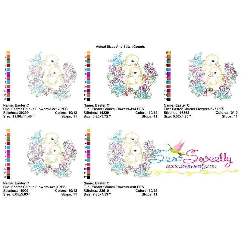Colorwork Easter Chicks Flowers Machine Embroidery Design Pattern For Easter.