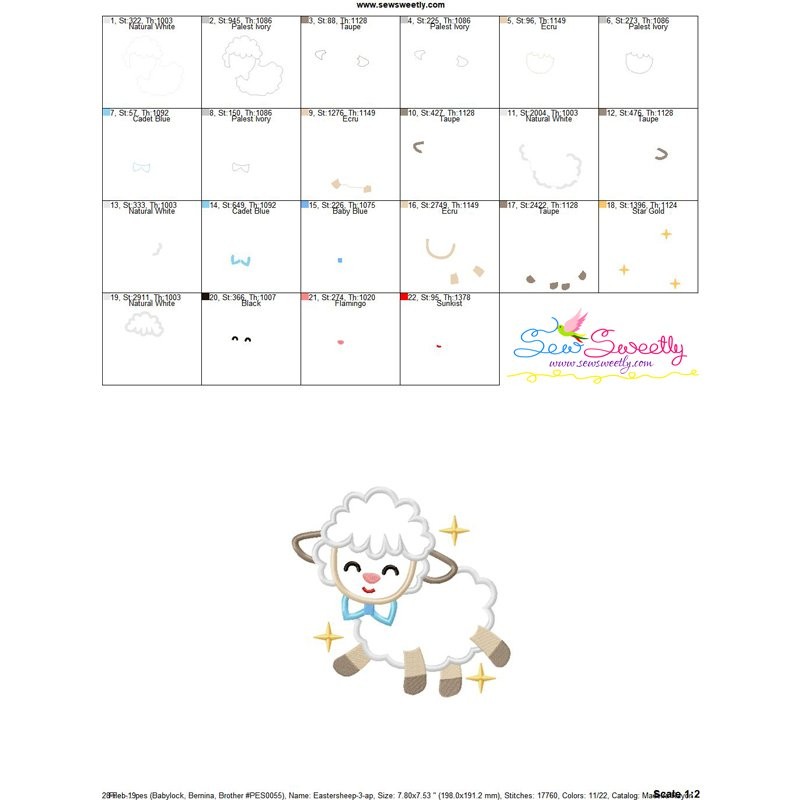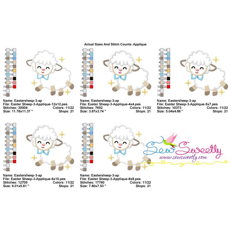 Baby Easter Sheep-3 Machine Embroidery Applique Design Pattern For Easter.