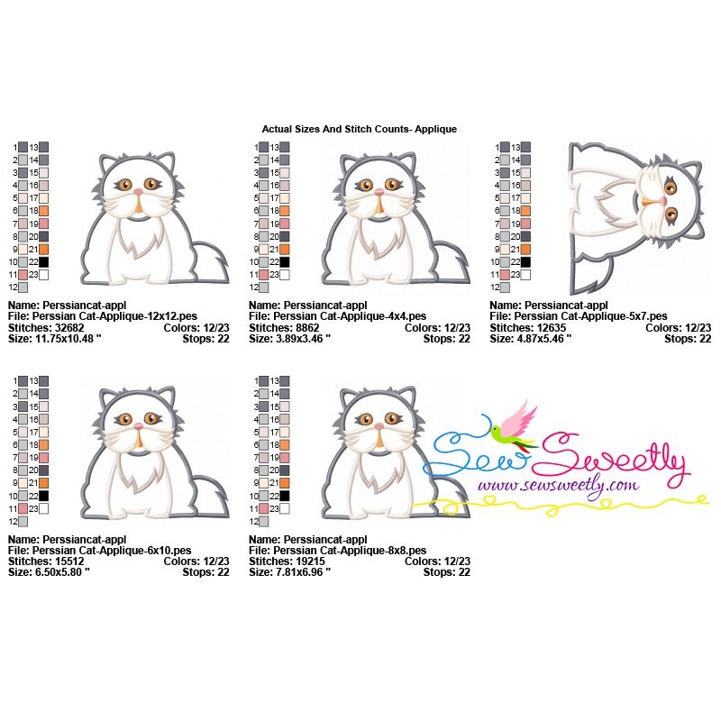 Persian Cat Machine Embroidery Applique Design Pattern For Cat Lovers.