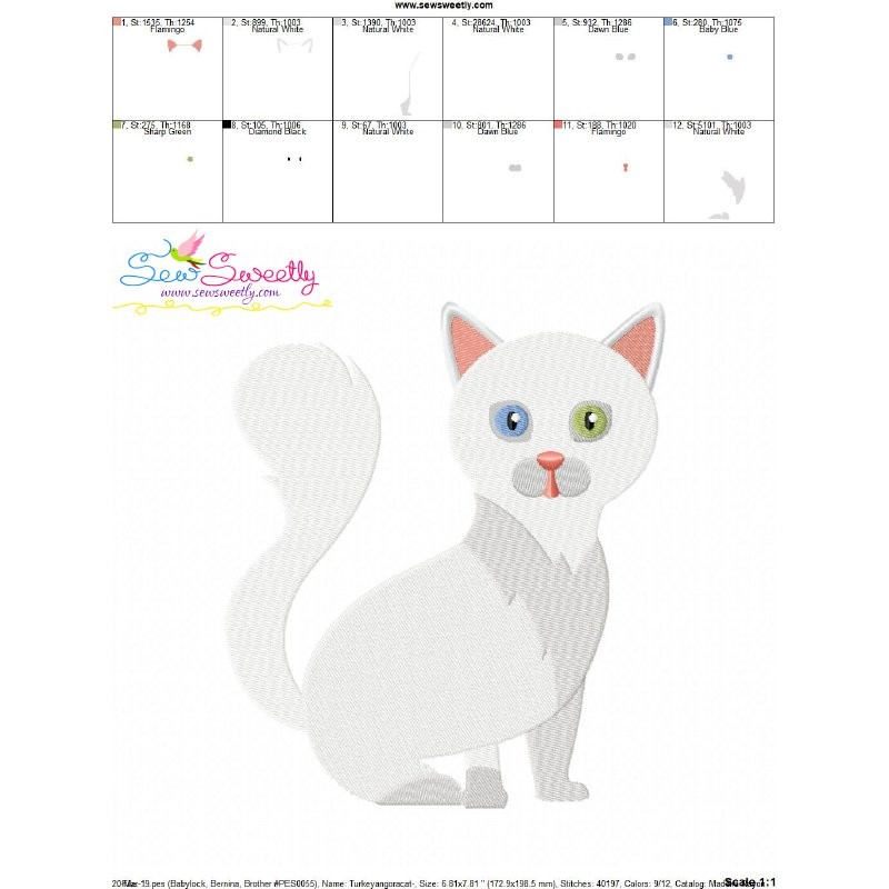 Turkish Angora Cat Machine Embroidery Design Pattern For Cat Lovers.