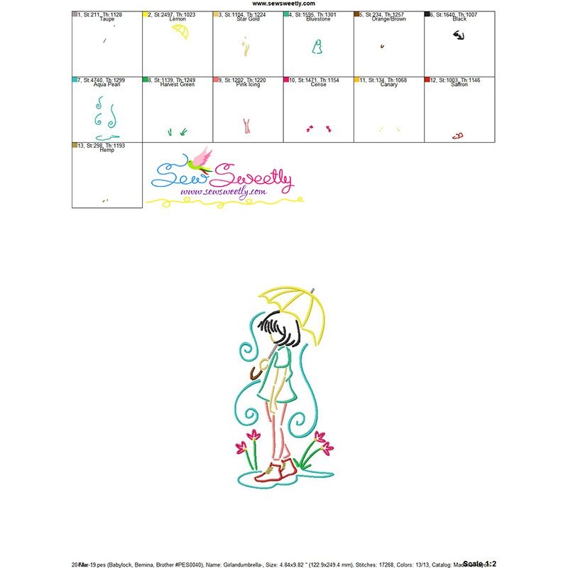 Embroidery Design Pattern - Girl With Umbrella-1-1