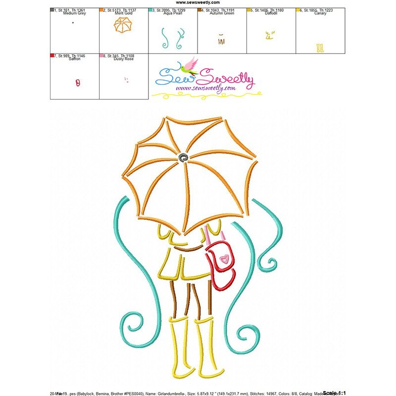 Girl and Umbrella-8 Embroidery Design Pattern-1