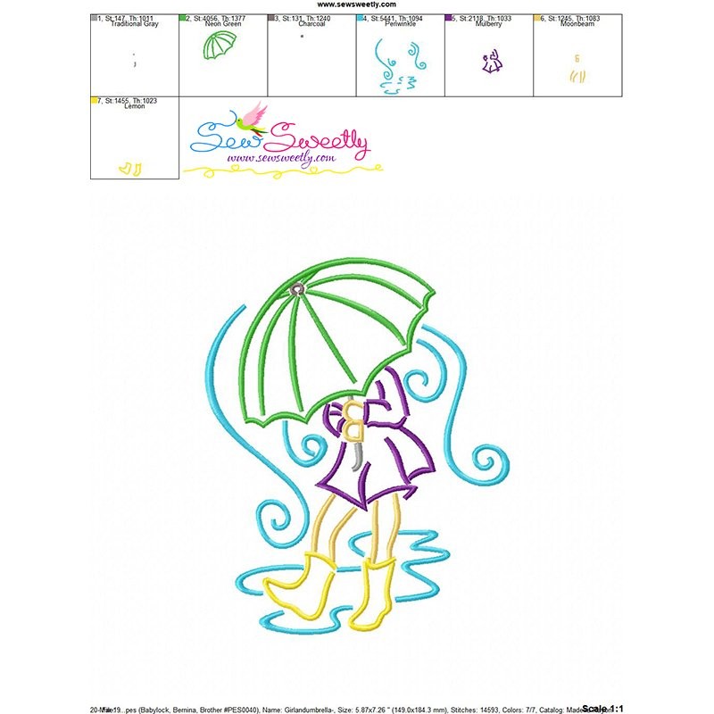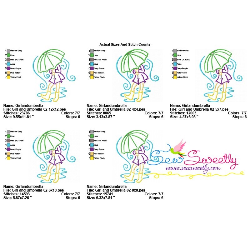 Girl and Umbrella-7 Embroidery Design Pattern