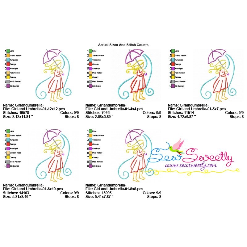 Girl and Umbrella-8 Embroidery Design Pattern-1