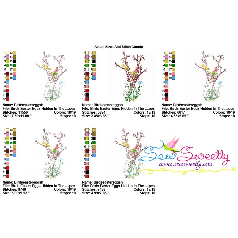 Birds Easter Eggs Hidden In The Garden-10 Machine Embroidery Design Pattern For Easter.