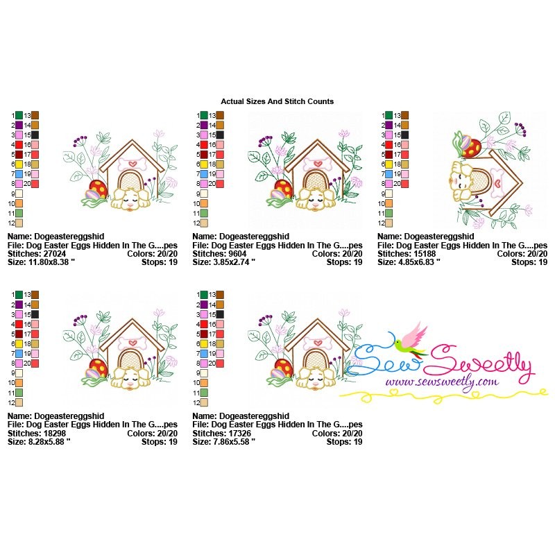 Dog Easter Eggs Hidden In The Garden-9 Machine Embroidery Design Pattern For Easter.