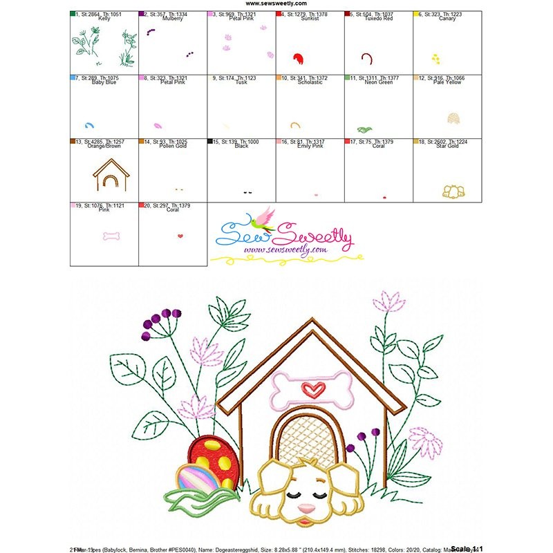 Dog Easter Eggs Hidden In The Garden-9 Embroidery Design Pattern