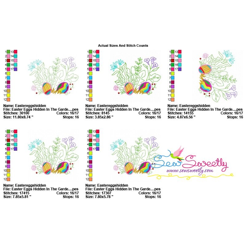 Easter Eggs Hidden In The Garden-4 Machine Embroidery Design Pattern For Easter.