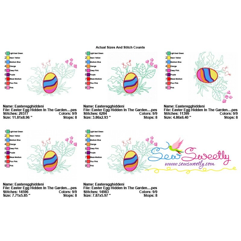 Easter Egg Hidden In The Garden-3 Machine Embroidery Design Pattern For Easter.