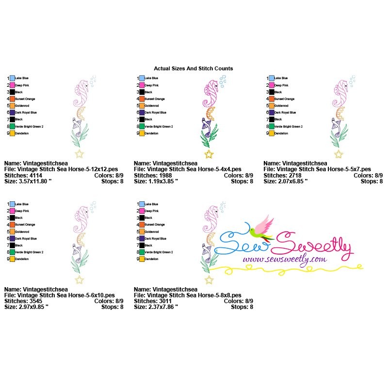 Vintage Stitch Seahorse-5 Machine Embroidery Design Pattern For Summer Season.