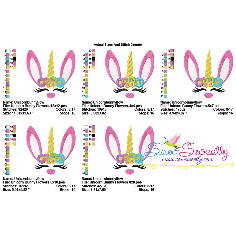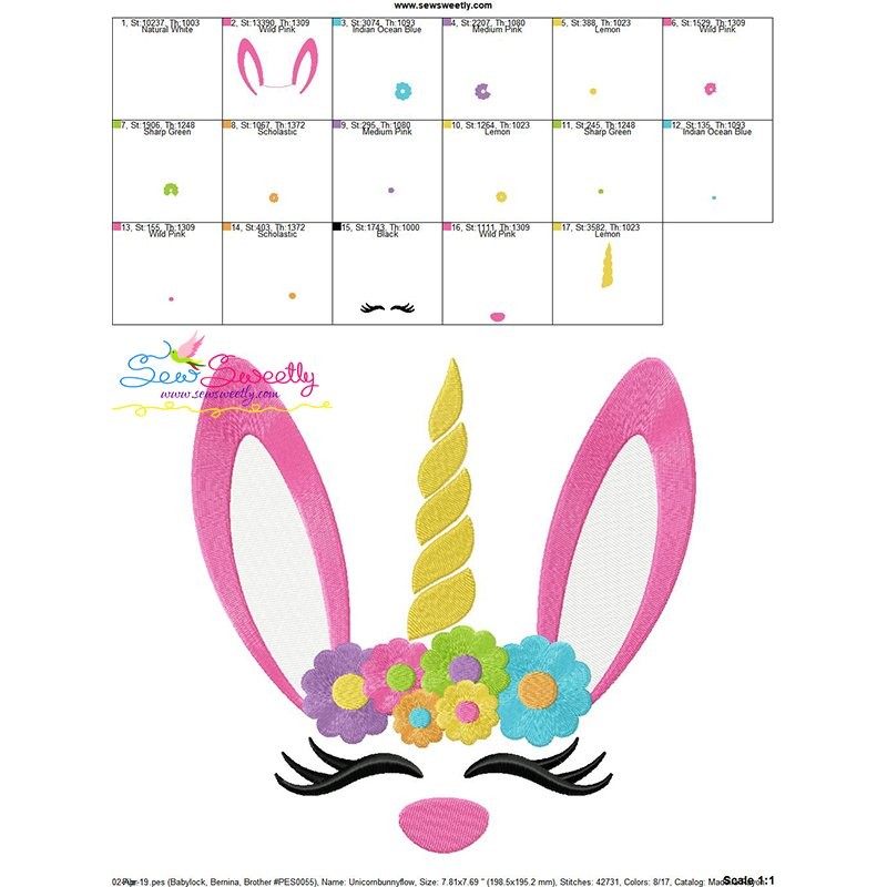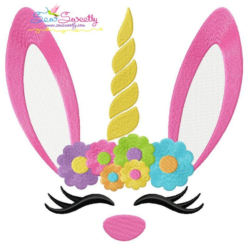 Unicorn Bunny Flowers Machine Embroidery Design Pattern For Easter.