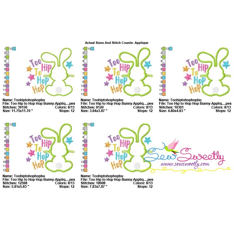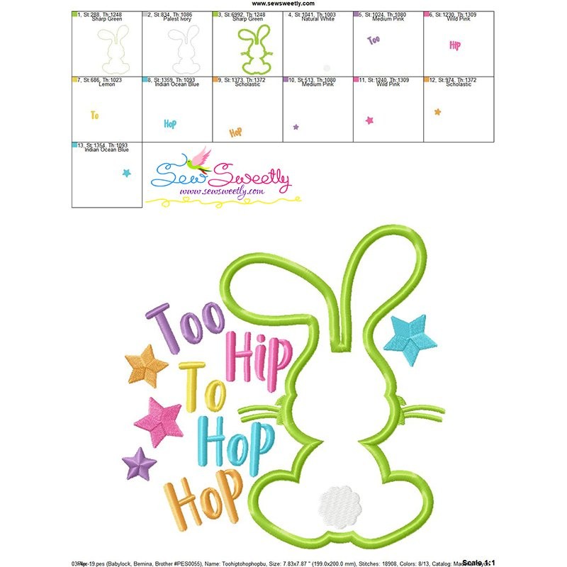 Too Hip to Hop Hop Bunny Machine Embroidery Applique Design Pattern For Easter.