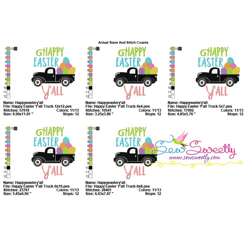 Happy Easter Y'all Truck Lettering Machine Embroidery Design Pattern For Easter.