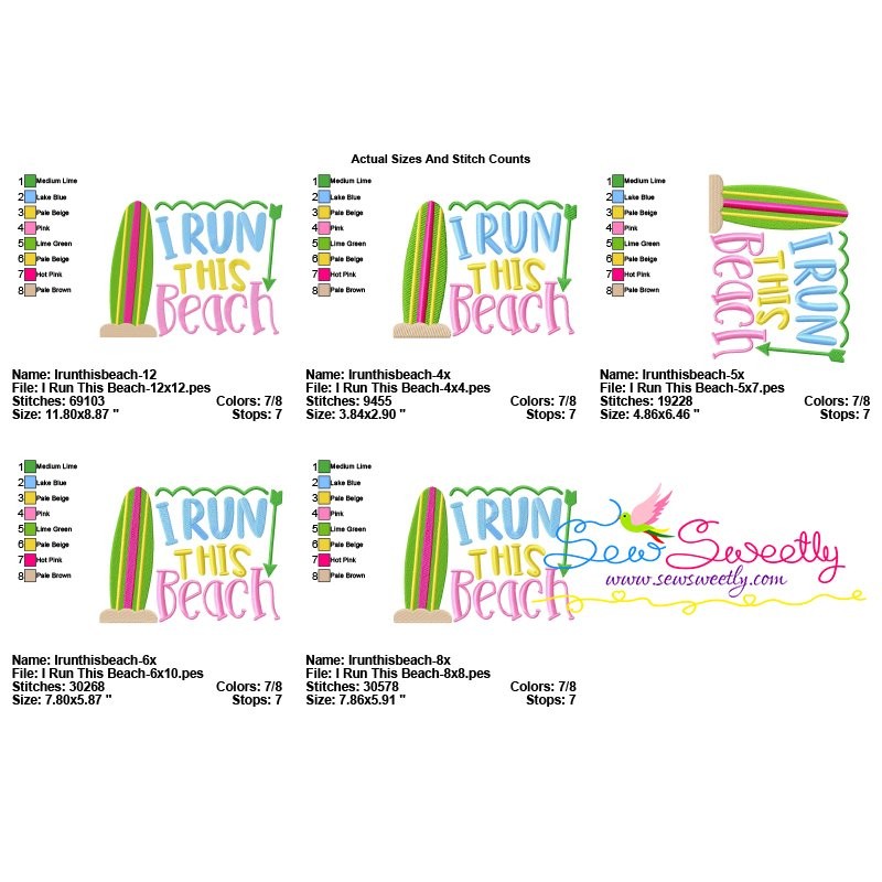 I Run This Beach Lettering Machine Embroidery Design Pattern For Summer Season.