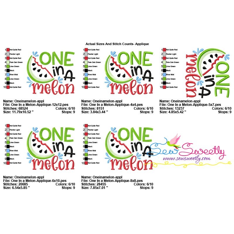 One In a Melon Machine Embroidery Applique Design Pattern For Summer Season.