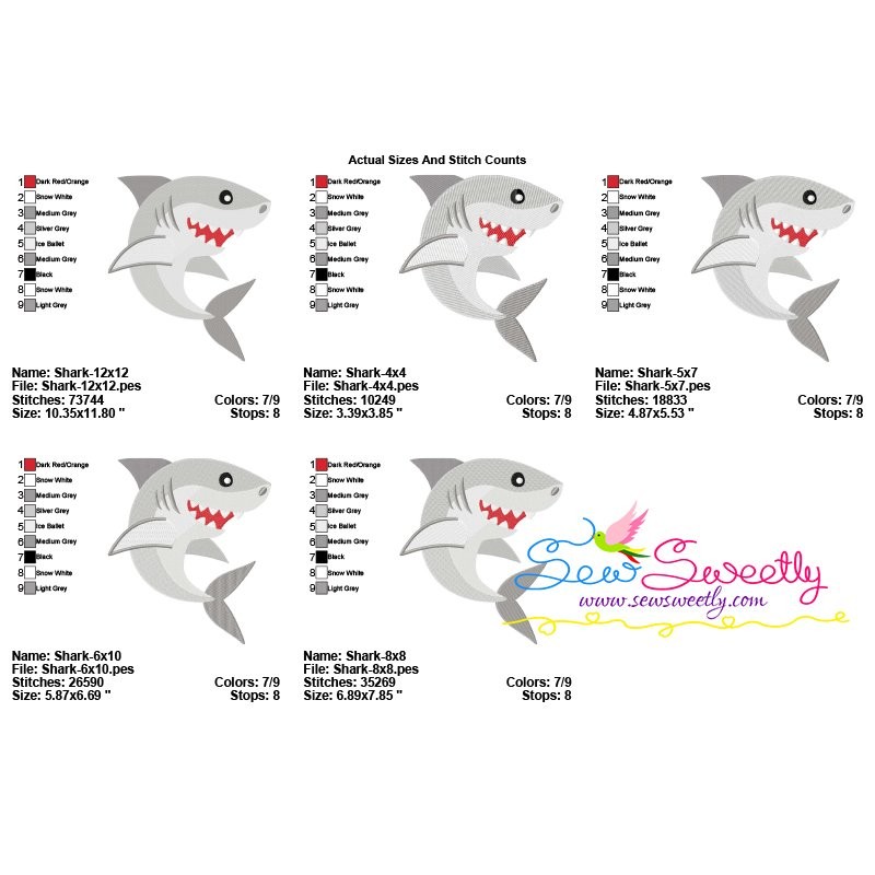 Cute Shark Machine Embroidery Design Pattern For Summer Projects.