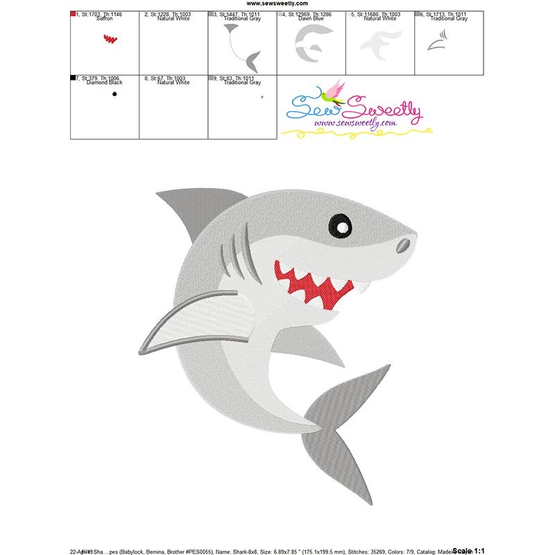 Cute Shark Machine Embroidery Design Pattern