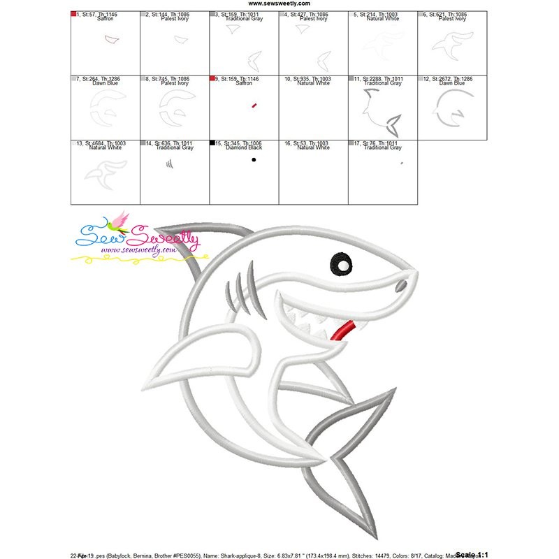 Cute Shark Machine Embroidery Applique Design Pattern For Summer Projects.
