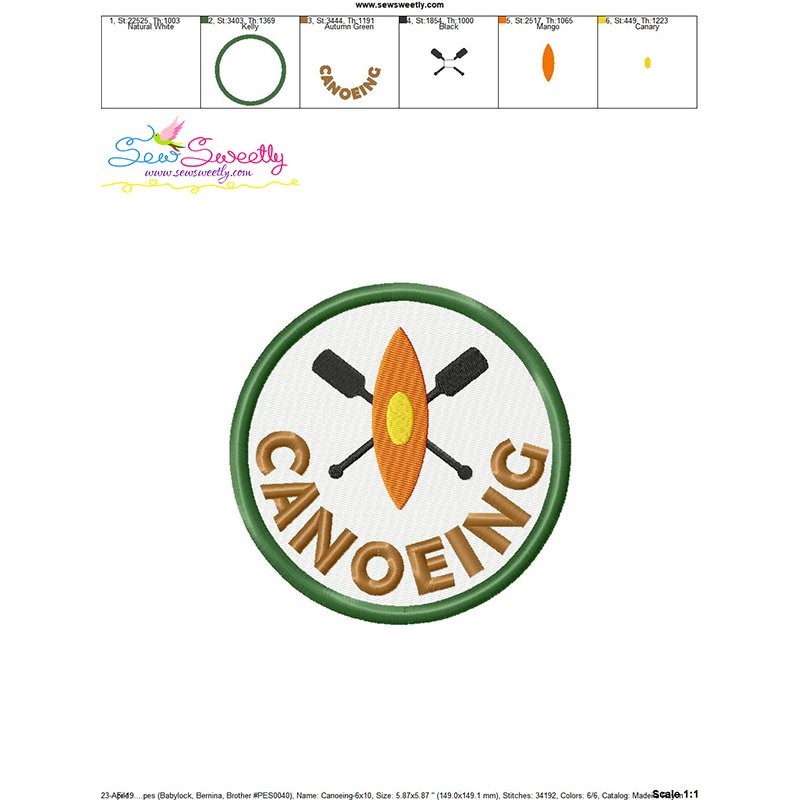 Canoeing Badge Machine Embroidery Design Pattern