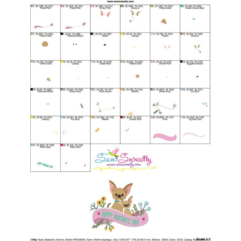 Mother's Day Dogs Embroidery Design Pattern