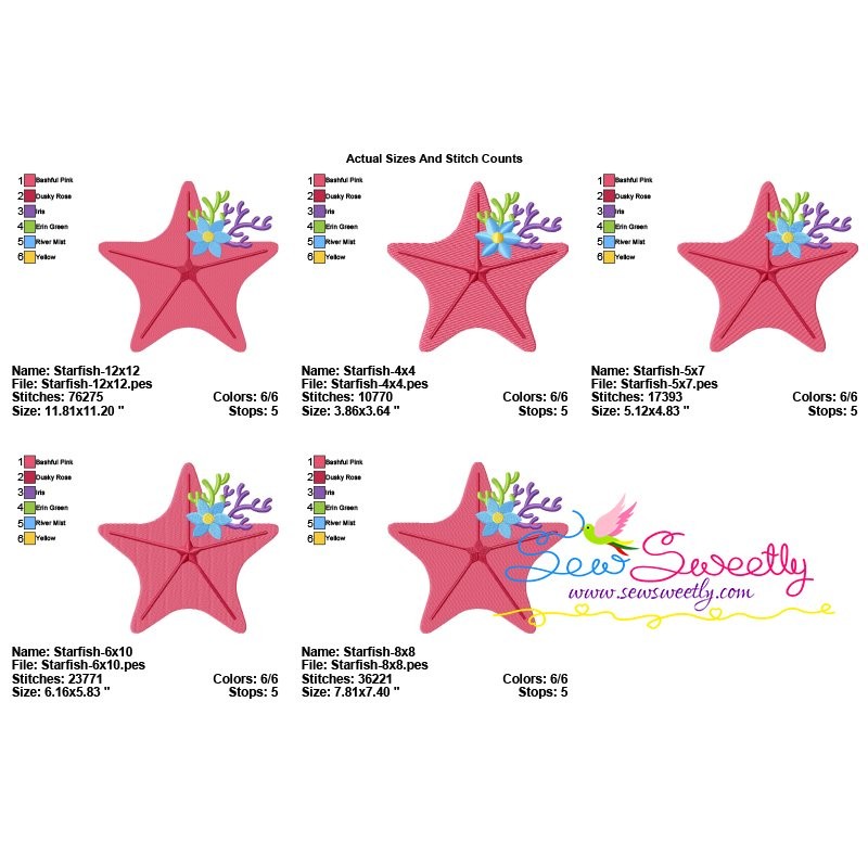 Starfish-2 Machine Embroidery Design Pattern For Sea Life Embroidery Projects.