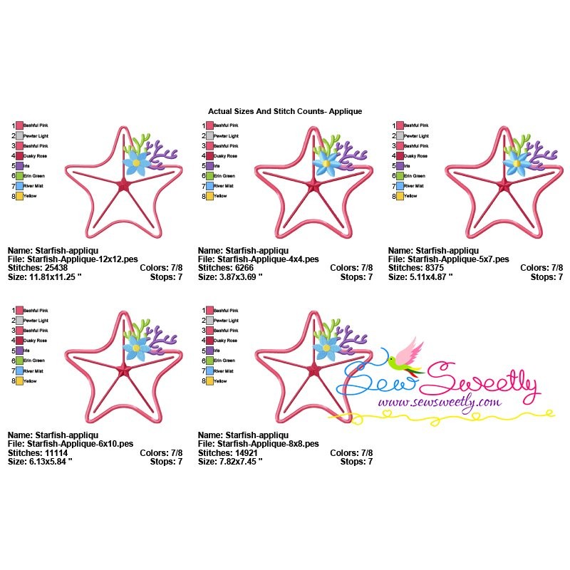 Starfish-2 Machine Embroidery Applique Design Pattern For Sea Life Embroidery Projects.