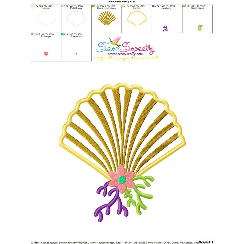 Cockle Shell Machine Embroidery Applique Design Pattern For Sea Life Embroidery Projects.