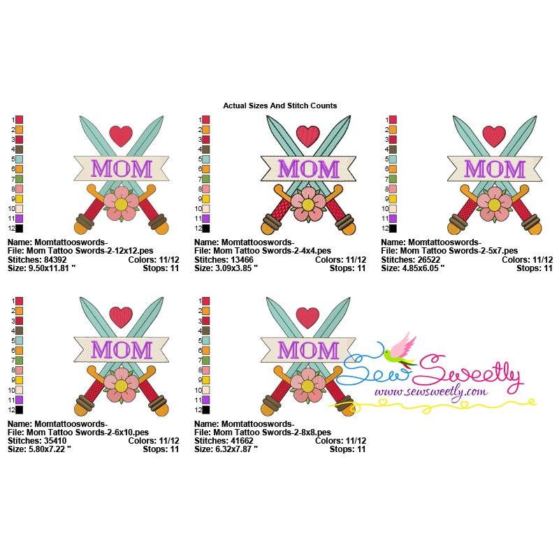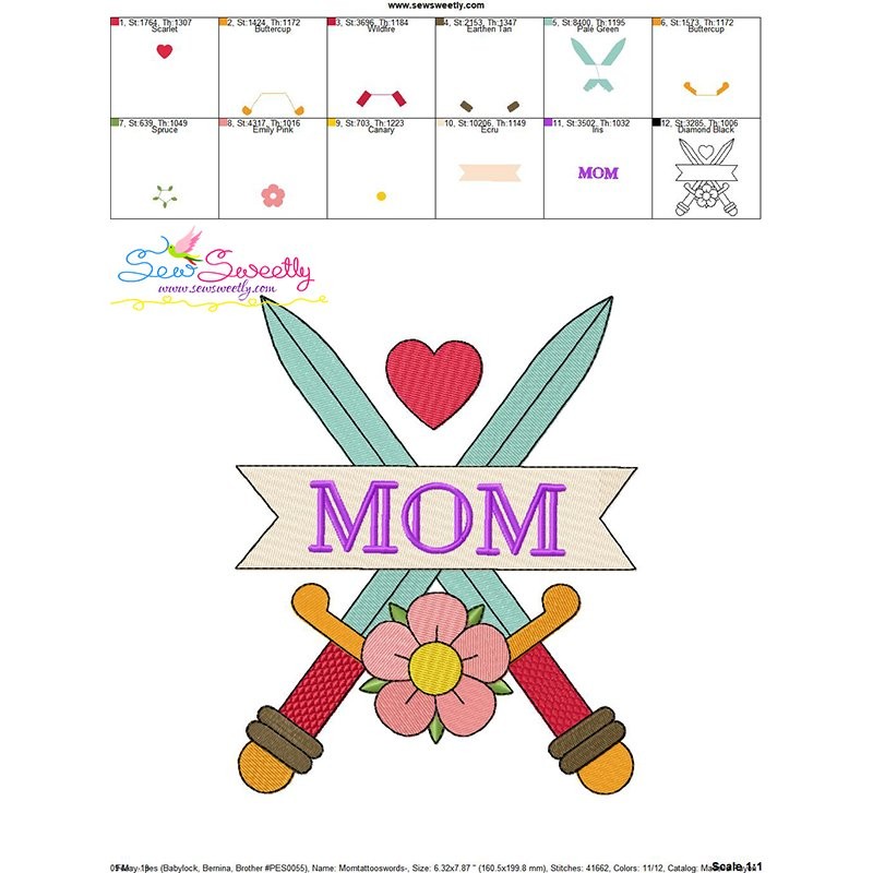 Mom Tattoo Swords-2 Embroidery Design Pattern