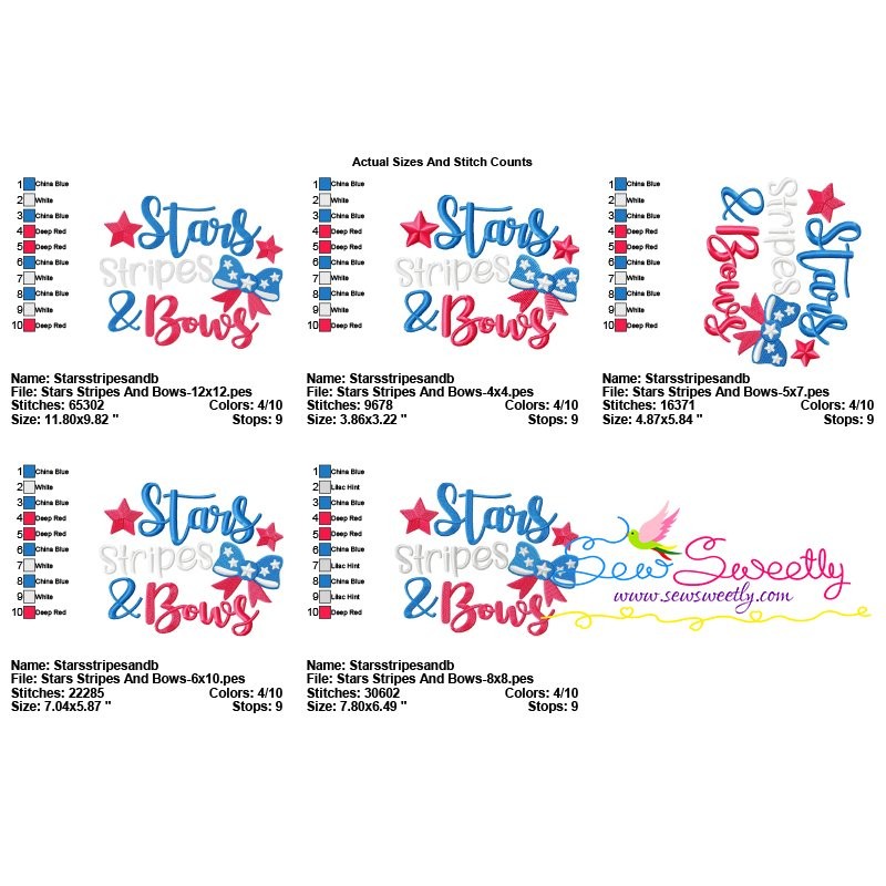 Stars Stripes And Bows Patriotic Lettering Embroidery Design Pattern-2