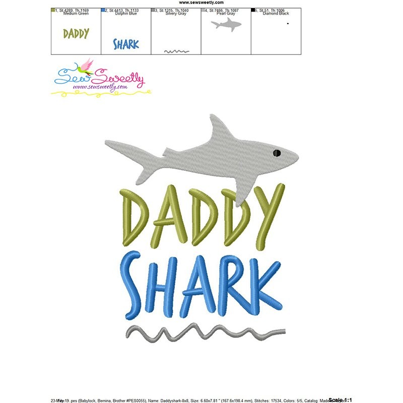 Daddy Shark Lettering Embroidery Design Pattern-1