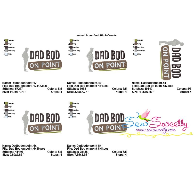 Dad Bod on Point Lettering Machine Embroidery Design Pattern For Father's Day.