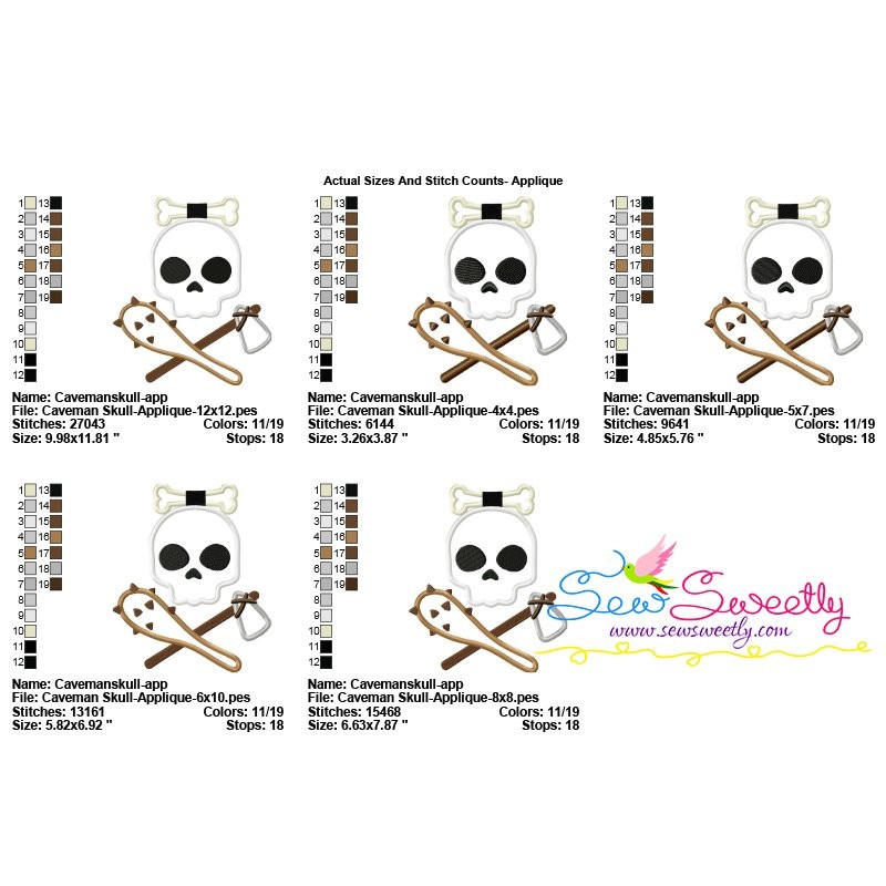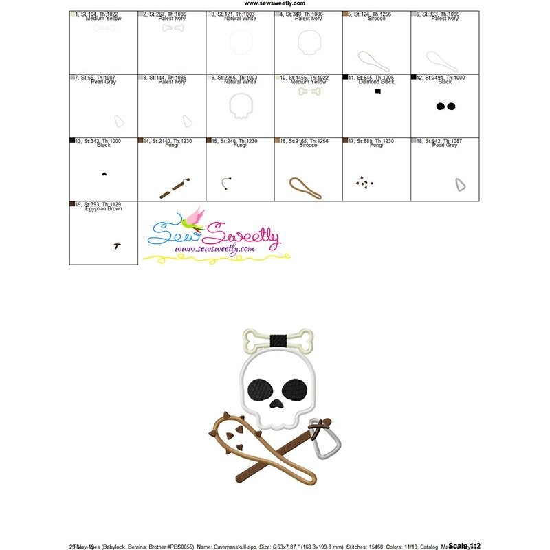 Caveman Character Skull Machine Embroidery Applique Design Pattern, Best For Jacket Back.