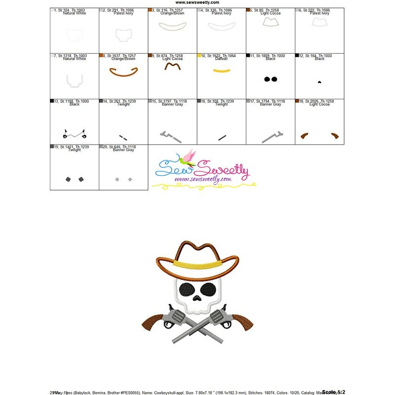 Cowboy Character Skull Applique Design Pattern