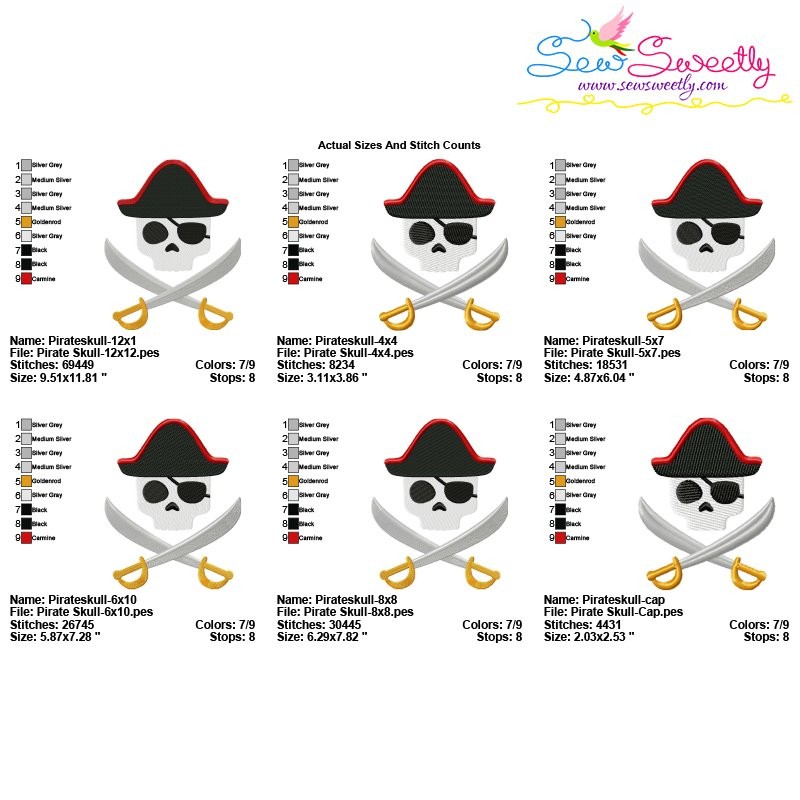 This Embroidery Design Bundle Includes 6 Beautiful Character Skulls Machine Embroidery Designs With Applique Versions.
