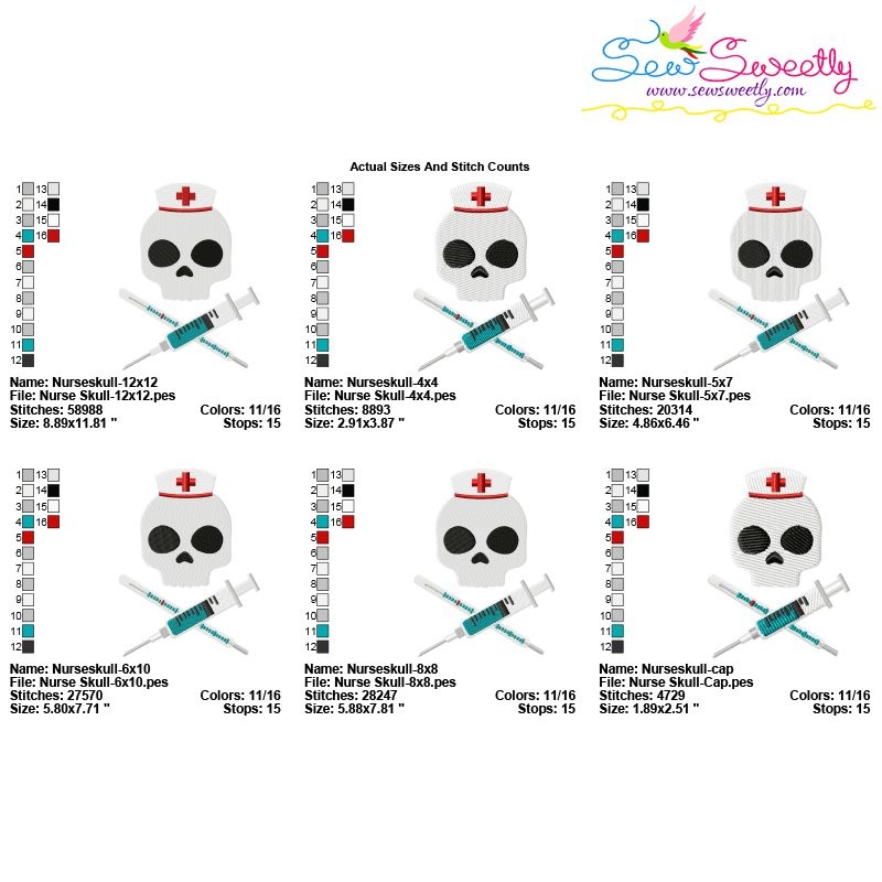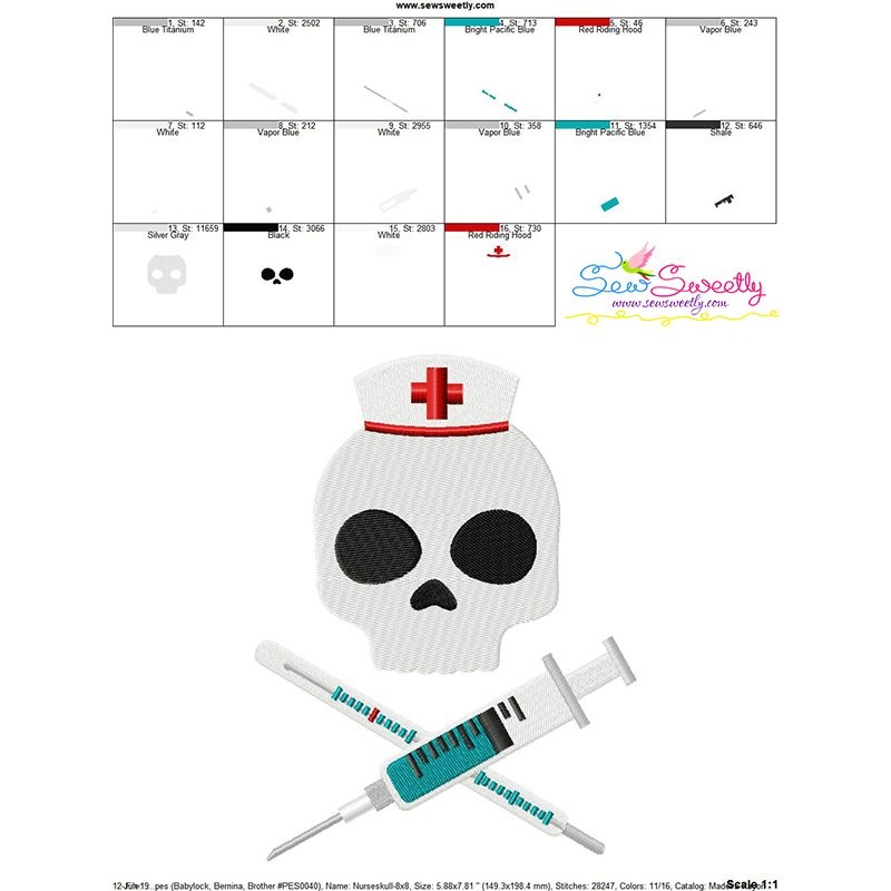 Nurse Profession Skull Machine Embroidery Design Pattern, Best For Caps And Jacket Backs.