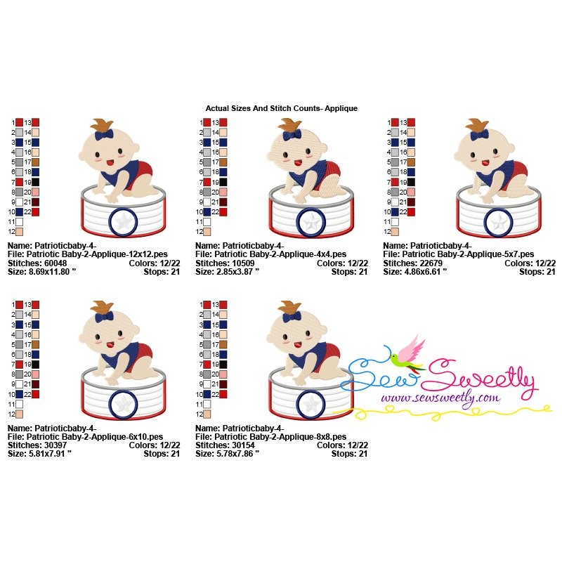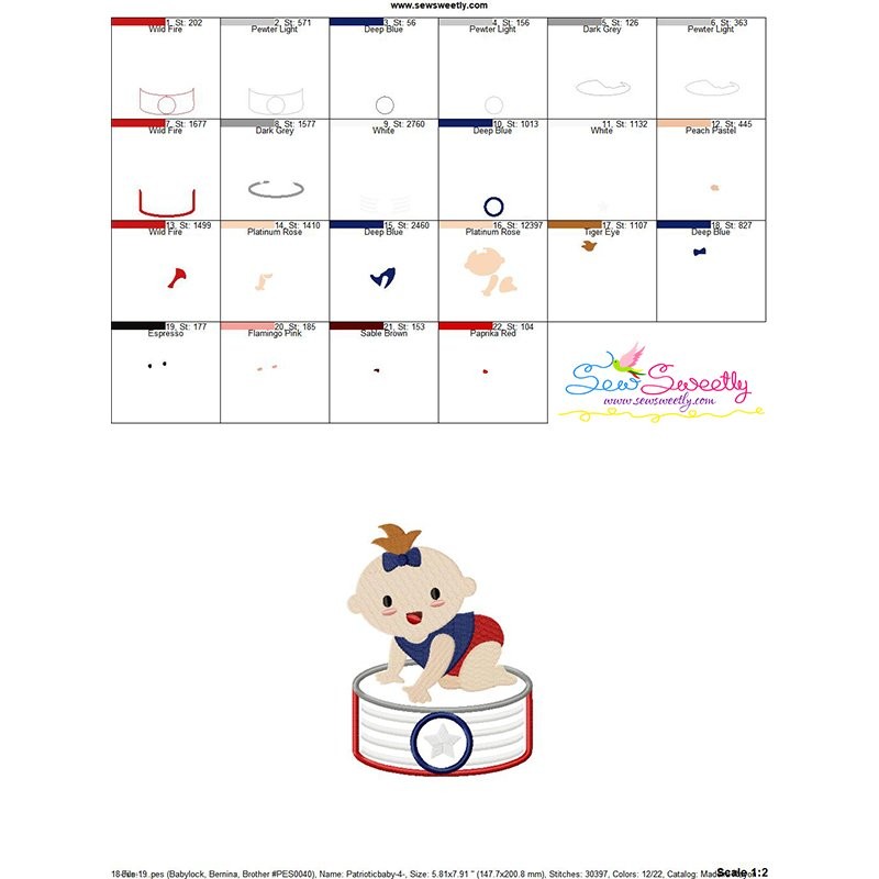 Patriotic Baby-2 Machine Embroidery Applique Design Pattern For 4th of July Independence Day.
