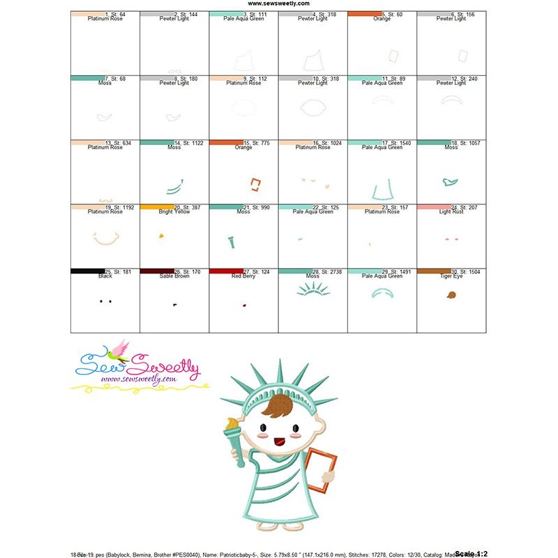 Patriotic Baby-1 Machine Embroidery Applique Design Pattern For 4th of July Independence Day.
