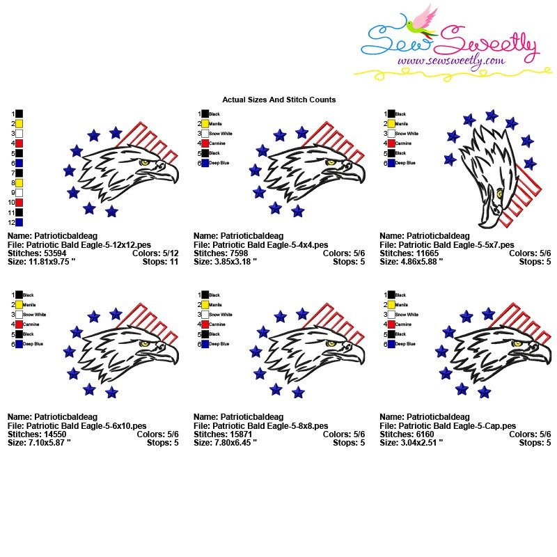 This Embroidery Design Set Includes 9 Beautiful 4th of July Patriotic Bald Eagles Machine Embroidery Designs.